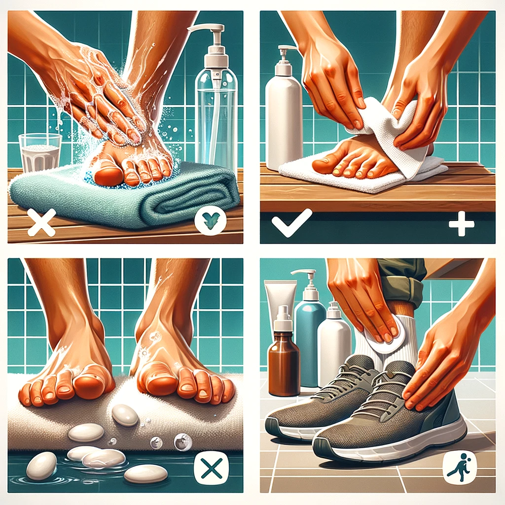 곰팡이는 습한 환경에서 번성합니다. 발을 깨끗하고 건조하게 유지하면 곰팡이가 자라는 데 필요한 수분이 최소화됩니다. 특히 발가락 사이를 정기적으로 씻고 철저히 건조시키면 감염 위험을 크게 줄일 수 있습니다.