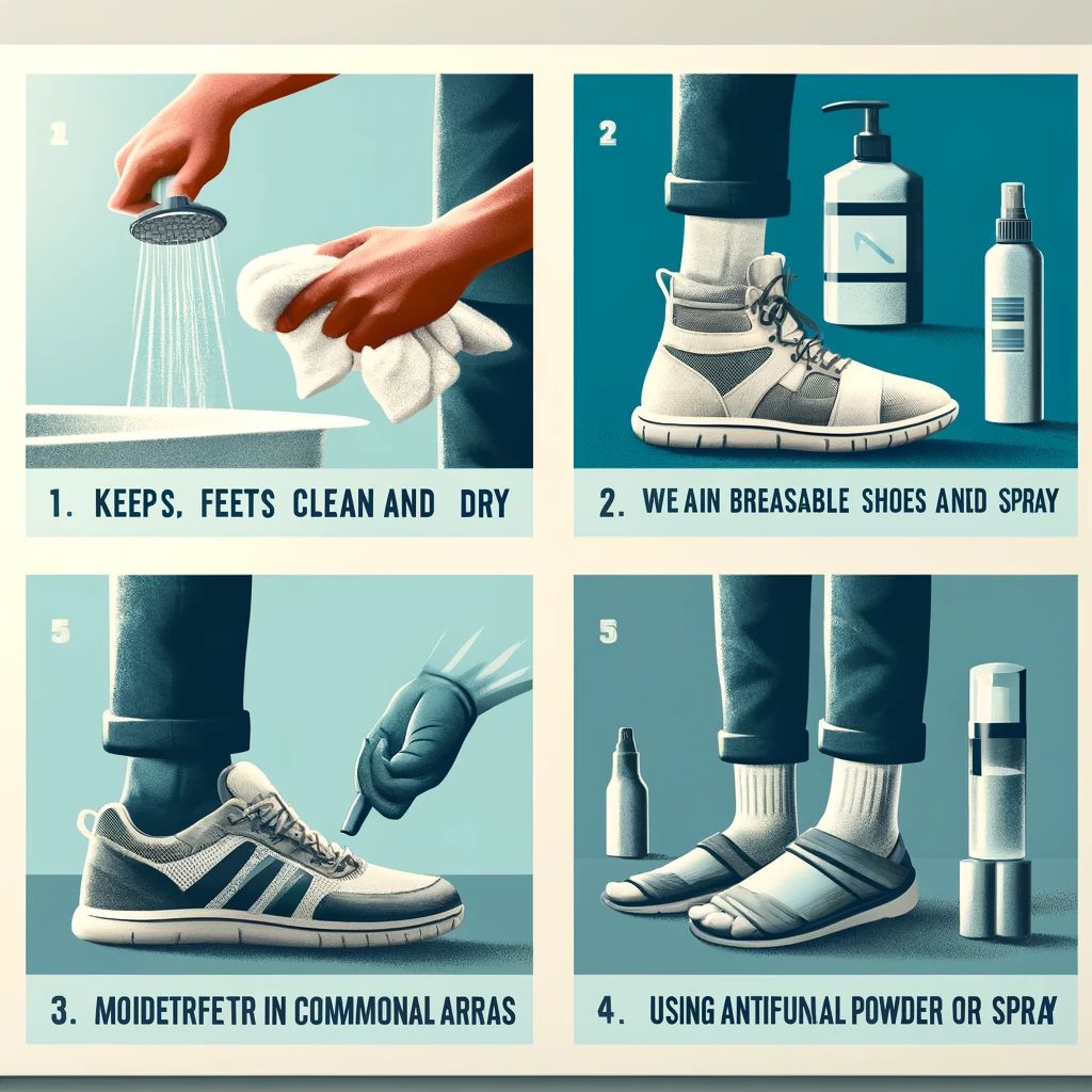 발 파우더 사용 : 발에 항진균제나 탤컴 파우더를 바르면 습기를 흡수하고 곰팡이 발생 위험을 줄이는 데 도움이 됩니다.